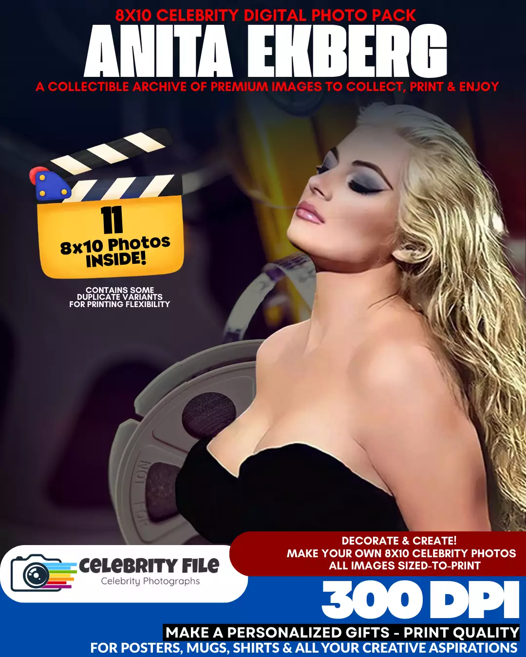 ANITA EKBERG! The Silver Screen’s most DAZZLING and DESIRABLE sensation! This FORBIDDEN TREASURE is the archive the studios kept locked away! A STUNNING PORTFOLIO of rare, intoxicating views that capture every pulse-pounding moment! Display this piece of MID-CENTURY SIN! Own the mystery! Show the world you possess the beauty of a true goddess! LIMITED TIME OFFER! Secure this PACK OF GLAMOUR today!