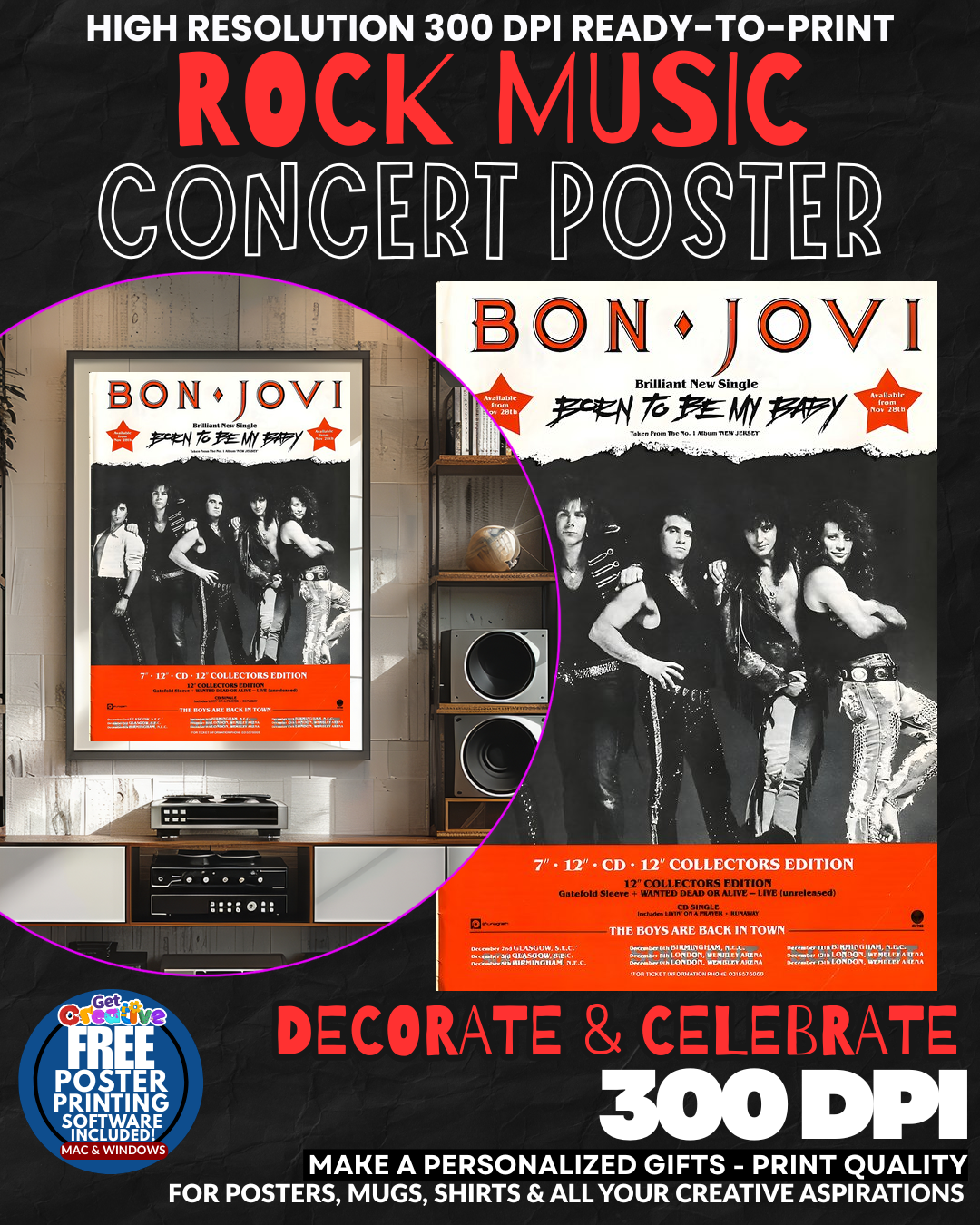 ROCK AND ROLL ROYALTY FOR YOUR WALLS! Transform your space into a SHRINE OF PURE ROCK POWER with this electrifying Bon Jovi concert poster! Feel the thunderous energy of stadium anthems and hair-whipping guitar solos radiating from every inch of your room! This isn’t just wall art – it’s your personal backstage pass to rock immortality that screams LIVING ON A PRAYER energy 24/7! Your guests will be absolutely STUNNED by the raw musical magnetism flowing from your walls! GRAB this slice of New Jersey rock heaven NOW!