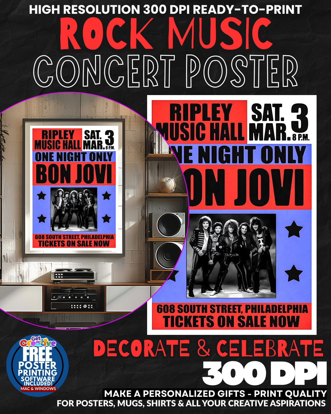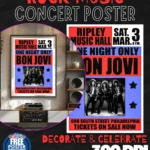 ROCK ROYALTY COMMANDS YOUR WALL SPACE! Transform any ordinary room into a SHRINE TO ROCK AND ROLL GREATNESS with this electrifying Bon Jovi concert poster that captures the RAW POWER and stadium-shaking energy of New Jersey’s finest rock legends! This isn’t just wall art – it’s your personal backstage pass to ROCK IMMORTALITY that instantly elevates your space with the rebellious spirit and anthemic power that made millions sing along to Living on a Prayer! Every glance transports you to those legendary arena moments where leather jackets, big hair, and PURE ROCK PASSION ruled the world! GRAB this piece of rock history and let your walls SCREAM with authentic rock and roll attitude!