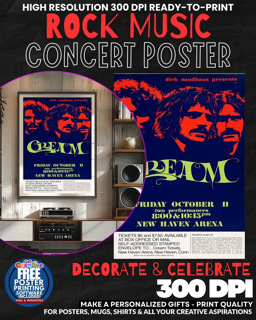 ROCK ROYALTY GRACES YOUR WALLS WITH LEGENDARY POWER! Transform your space into a SHRINE OF MUSICAL GREATNESS with this stunning Cream concert poster that captures the RAW ENERGY and BLUES-ROCK MASTERY of one of music’s most EXPLOSIVE power trios! Every glance delivers a rush of that unmistakable PSYCHEDELIC THUNDER that made Cream the ultimate supergroup sensation, bringing the electrifying spirit of classic rock directly into your home where it commands INSTANT RESPECT from every music lover who enters! This isn’t just wall art, it’s a DECLARATION of your sophisticated musical taste and deep appreciation for the legends who created the blueprint for rock greatness! GRAB this iconic piece of rock history now!
