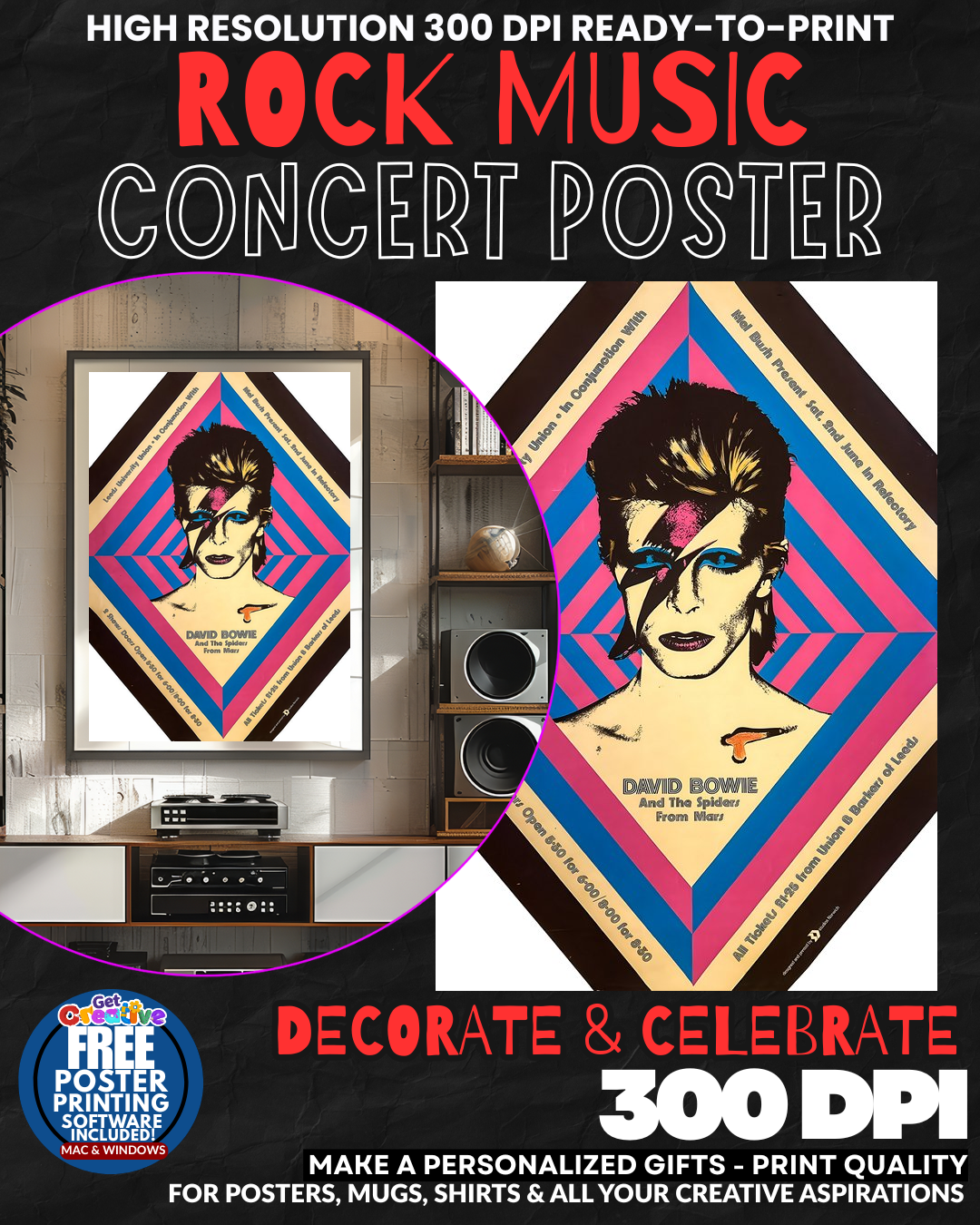 BRING THE LIGHTNING BOLT HOME! Transform your space into a ROCK AND ROLL SHRINE with this ELECTRIFYING David Bowie concert poster that captures the RAW MAGNETIC POWER of the Thin White Duke himself! This isn’t just wall art – it’s a PORTAL TO GREATNESS that floods your room with the sophisticated GLAM ROCK ENERGY that made Bowie a legend! Every glance delivers that same spine-tingling rush you felt hearing Ziggy Stardust for the first time, turning ordinary walls into a CELEBRATION OF MUSICAL GENIUS! Your guests will be mesmerized by this stunning tribute to rock royalty that screams style and artistic rebellion! GRAB this piece of rock history now!