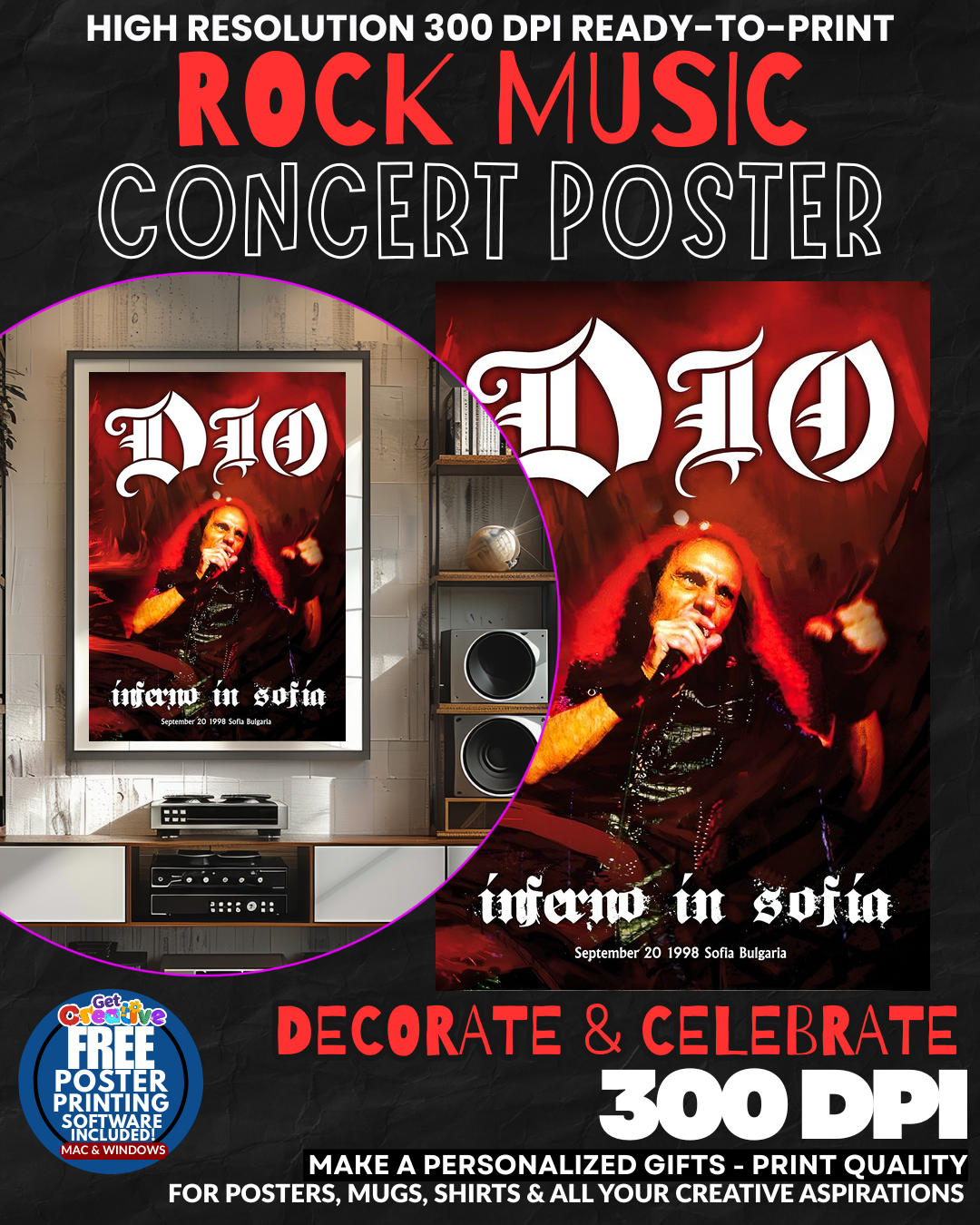ROCK ROYALTY COMMANDS YOUR WALL! Transform any space into a HEAVY METAL SHRINE with this ELECTRIFYING Dio concert poster that captures the LEGENDARY power of metal’s most iconic voice! This stunning wall art delivers PURE ROCK AND ROLL ENERGY that will make your home the ultimate destination for music lovers and metalheads alike. Every glance ignites memories of THUNDEROUS riffs and soaring vocals that defined an entire generation of rock greatness. Your guests will be MESMERIZED by this tribute to one of metal’s greatest frontmen! GRAB this piece of rock history today!