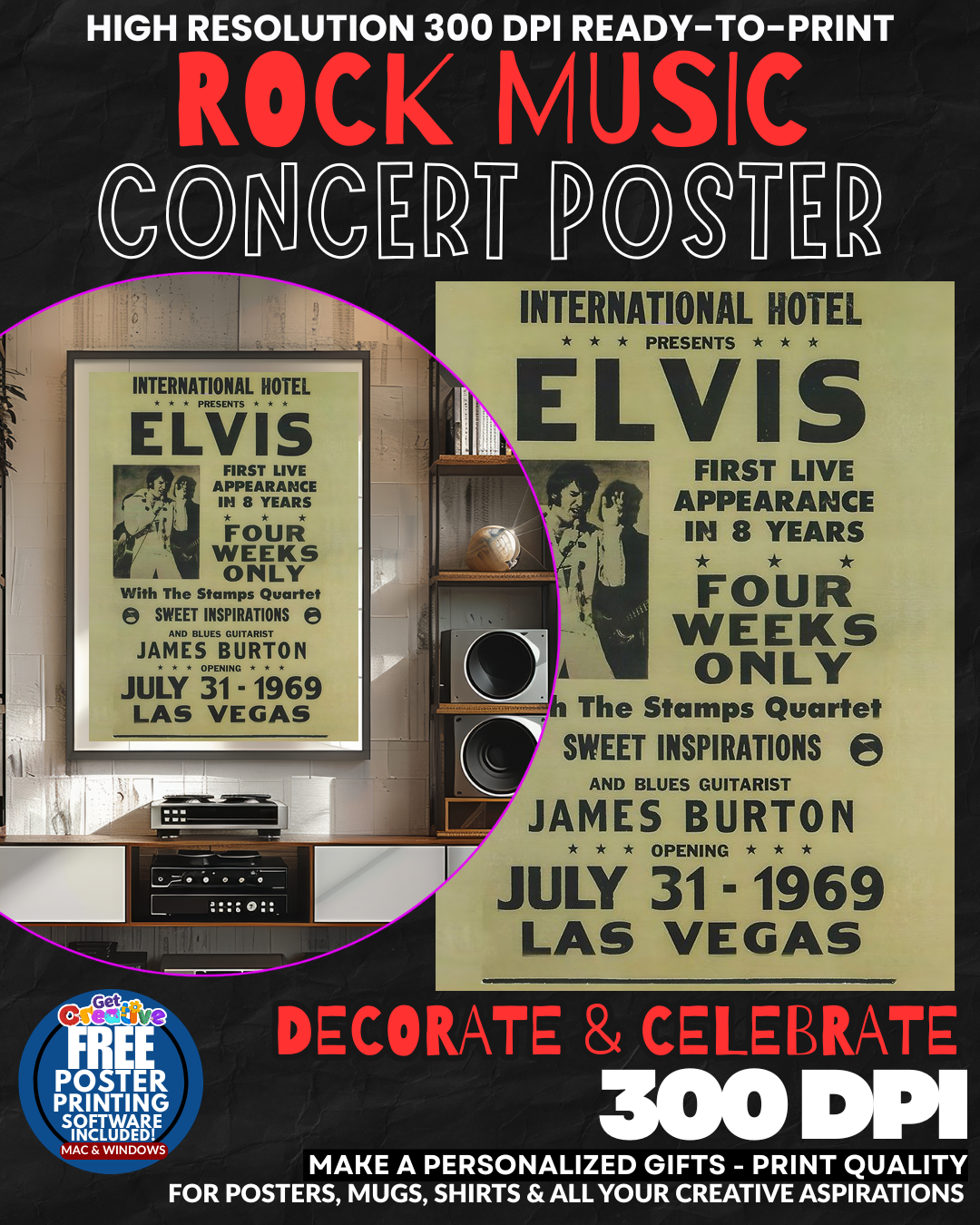BRING THE KING’S ELECTRIC ENERGY HOME! Transform your space into GRACELAND with this STUNNING tribute to the one and only ELVIS PRESLEY! This isn’t just wall art – it’s a PORTAL to rock and roll ROYALTY that captures the raw magnetism and hip-swiveling POWER of the King himself! Every glance fills your room with that legendary MEMPHIS MAGIC and timeless cool that made Elvis the ultimate ICON! Your guests will feel the ELECTRIC atmosphere of those legendary performances that shook the world! GET this piece of rock history NOW!