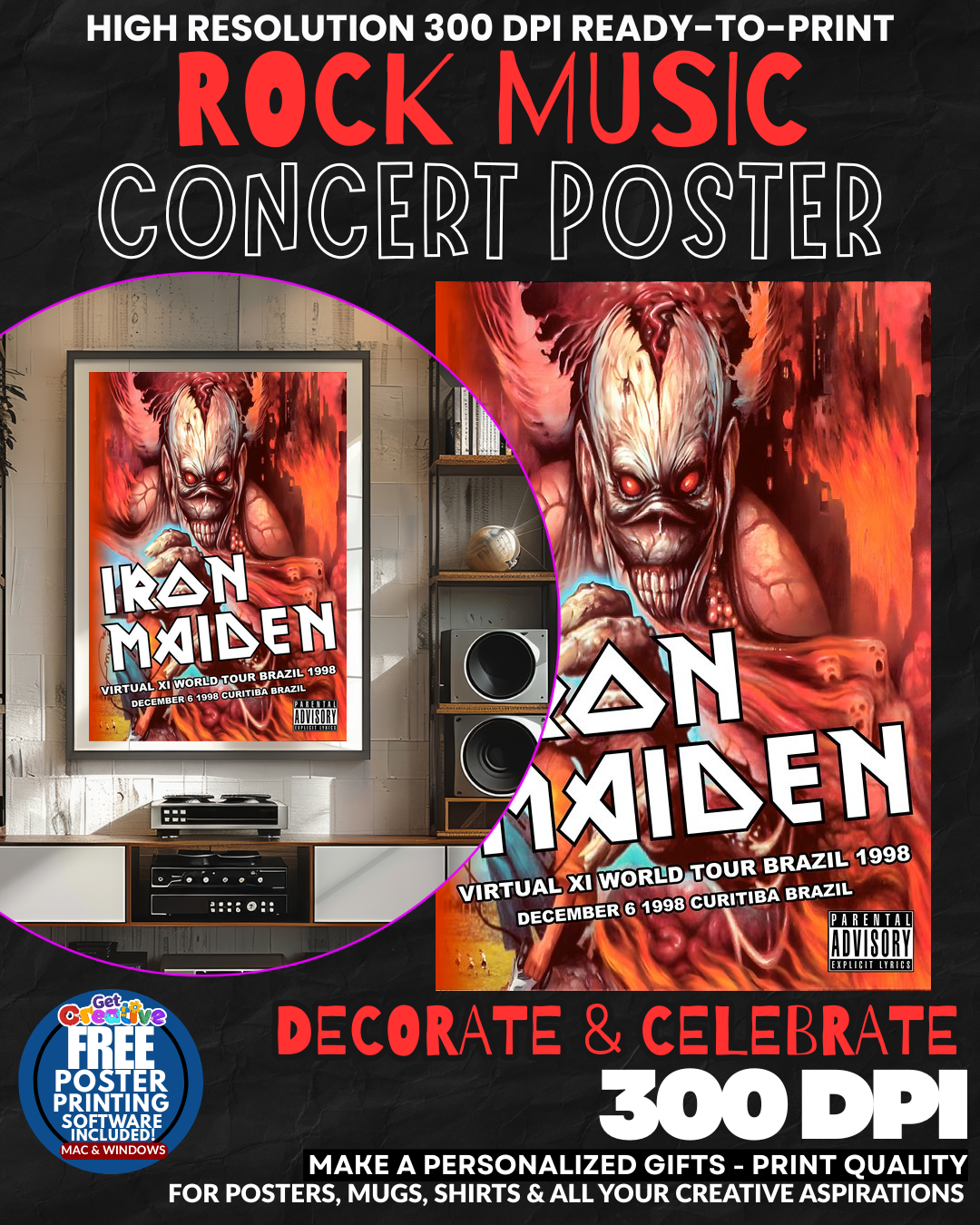 UNLEASH THE POWER OF HEAVY METAL ROYALTY IN YOUR DOMAIN! Transform your walls into a SHRINE OF ROCK GLORY with this ELECTRIFYING Iron Maiden concert poster that radiates the RAW ENERGY and LEGENDARY STATUS of metal’s most iconic warriors! Your guests will be STUNNED by the sheer MUSICAL MAGNIFICENCE displayed in your space as this poster commands INSTANT RESPECT and showcases your sophisticated taste in rock royalty! Feel the THUNDEROUS PRIDE of owning a piece that celebrates the masters of heavy metal mythology and turns any room into a CONCERT HALL OF CHAMPIONS! GRAB this incredible tribute to metal legends NOW!