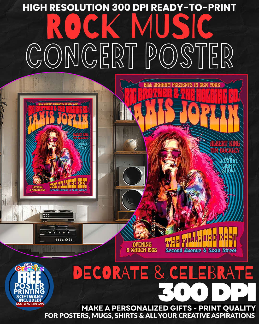 UNLEASH THE QUEEN OF ROCK AND ROLL IN YOUR SPACE! Transform any wall into a SHRINE TO PURE MUSICAL REBELLION with this stunning Janis Joplin concert poster that captures the RAW POWER and SOUL-CRUSHING BRILLIANCE of rock’s most legendary voice! Feel the ELECTRIC ENERGY of her unforgettable performances radiating through your room as this iconic wall art brings the WILD SPIRIT of the 1960s counterculture revolution directly into your personal sanctuary! Every glance will transport you to those LEGENDARY concert halls where Janis poured her HEART AND SOUL into every note, making your walls PULSE WITH ROCK AND ROLL HISTORY! This isn’t just decoration – it’s a PORTAL TO MUSICAL GREATNESS that will have guests mesmerized by the sheer MAGNETIC PRESENCE of one of music’s most powerful performers! GRAB this piece of rock history and let Janis Joplin’s eternal spirit ELECTRIFY your world!