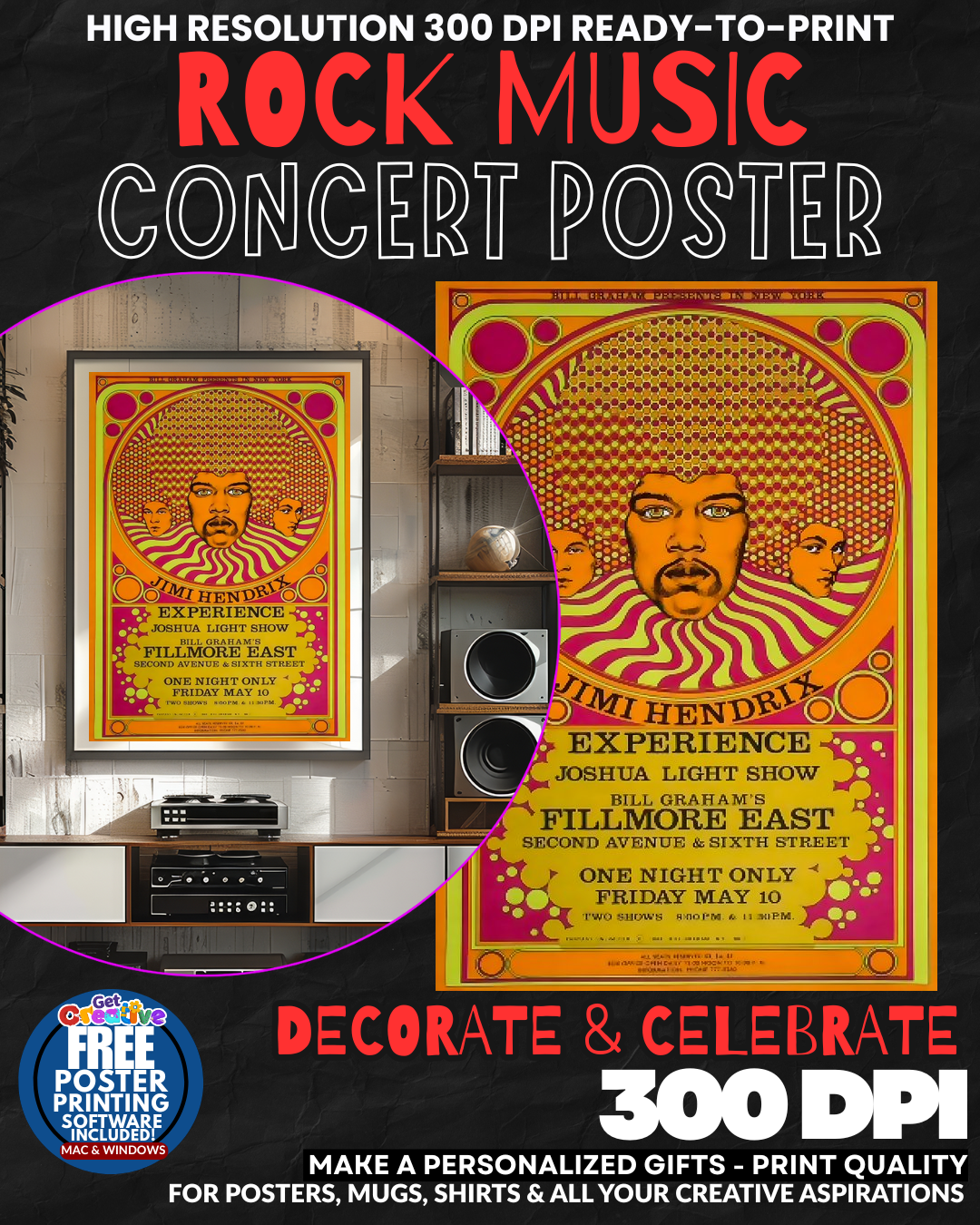 UNLEASH THE ELECTRIC GENIUS OF ROCK’S GREATEST GUITAR GOD! Transform your space into a SHRINE TO PURE MUSICAL BRILLIANCE with this stunning Jimi Hendrix concert poster that captures the RAW POWER and PSYCHEDELIC MAGIC of rock and roll’s most legendary performer! Feel the THUNDEROUS ENERGY of his guitar mastery radiating from your walls as this incredible artwork brings the WILD SPIRIT of the sixties music revolution directly into your home! Every glance will transport you to those ELECTRIFYING MOMENTS when Hendrix set his guitar ablaze and redefined what rock music could be! GRAB this piece of rock history and let the legend live on your wall!