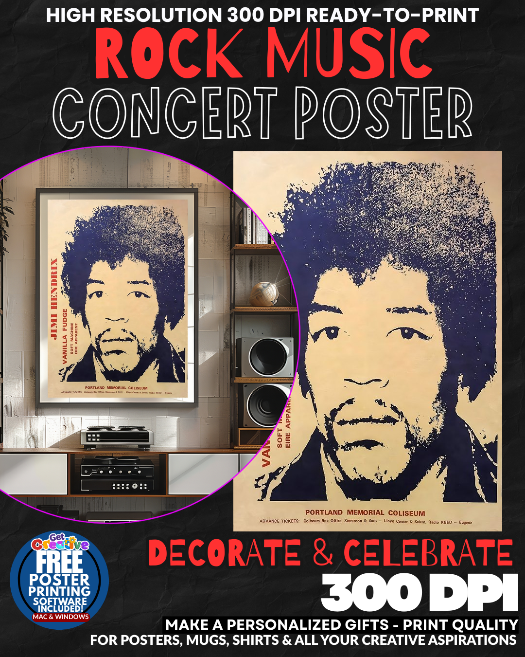 UNLEASH THE ELECTRIC GENIUS OF ROCK’S GREATEST GUITAR GOD! Transform your space into a SHRINE TO PURE MUSICAL BRILLIANCE with this stunning tribute to Jimi Hendrix! Four EXPLOSIVE concert poster designs capture the RAW POWER and psychedelic genius that made Hendrix a LEGEND! Your walls will PULSE with the same electric energy that set Woodstock on FIRE! Every glance will transport you to those MIND-BLOWING performances that changed rock music FOREVER! Feel the spirit of the greatest guitarist who ever lived flowing through your home! GRAB this incredible wall art collection NOW!