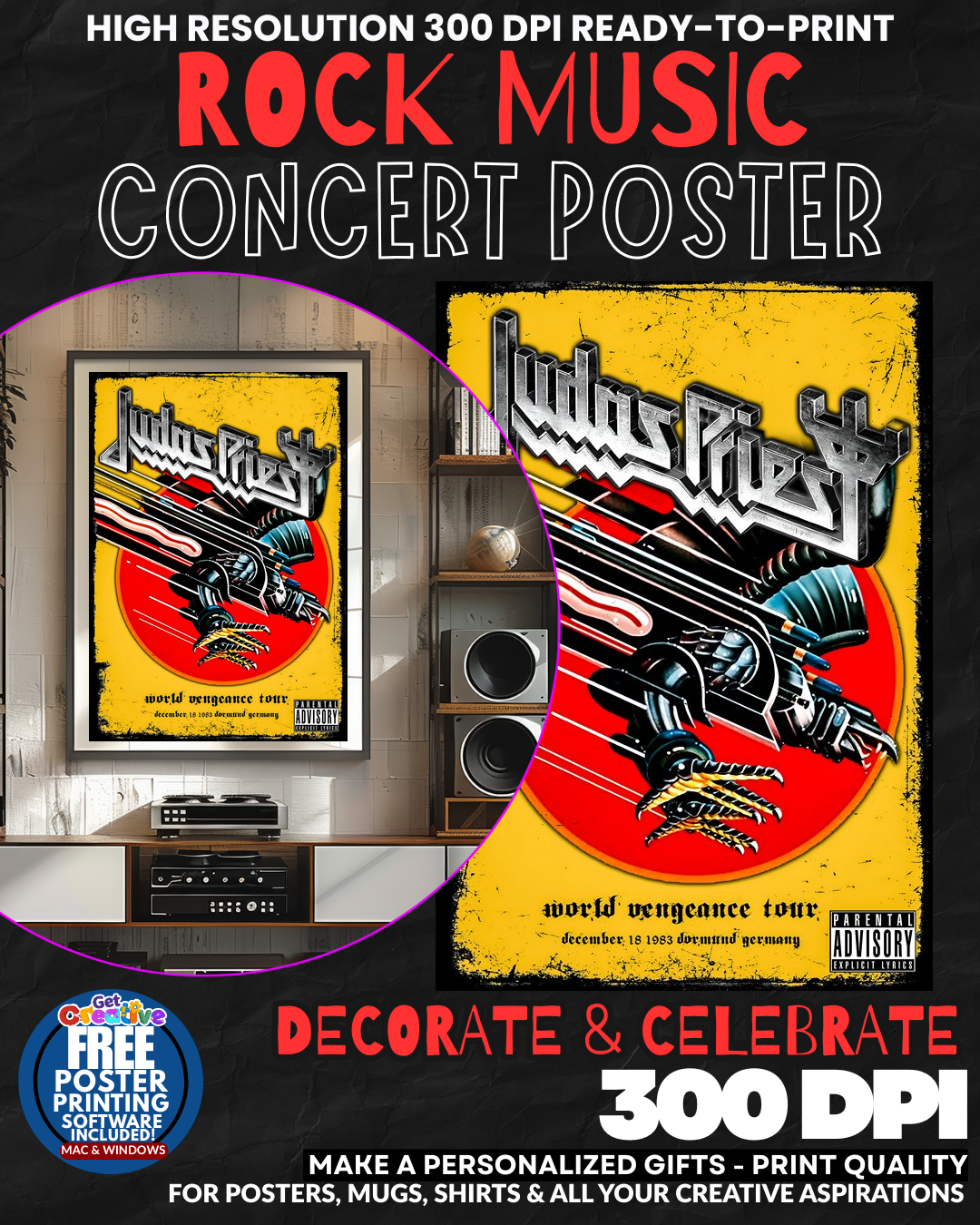 UNLEASH THE METAL GODS IN YOUR DOMAIN! Transform your space into a SHRINE OF PURE HEAVY METAL POWER with this electrifying Judas Priest concert poster that channels the raw energy and leather-clad rebellion of rock’s most legendary metal masters! Every glance delivers a thunderous rush of nostalgia as ROB HALFORD’S piercing vocals and twin guitar harmonies seem to ROAR directly from your wall, instantly elevating your room into a cathedral of metal worship that commands respect from every visitor! This isn’t just wall art – it’s a declaration of your allegiance to the gods of heavy metal that transforms any ordinary space into a FORTRESS OF ROCK AND ROLL GLORY! GRAB this piece of metal history and let the power of Judas Priest dominate your walls!