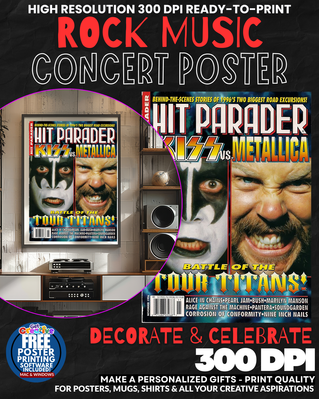 DUAL LEGENDS COLLIDE IN ROCK AND ROLL GLORY! Transform your space into a SHRINE TO METAL MASTERY with this electrifying poster celebrating two TITANS of rock history! KISS brings the theatrical FIRE AND FURY while Metallica delivers bone-crushing HEAVY METAL SUPREMACY in one EXPLOSIVE visual tribute! Your walls will PULSE with the raw energy of stadium-shaking anthems and face-melting guitar solos that defined generations of headbangers! Every glance ignites memories of legendary concerts, leather jackets, and the UNSTOPPABLE POWER of rock and roll rebellion! GRAB this poster and let your room ROCK with dual-legend energy!