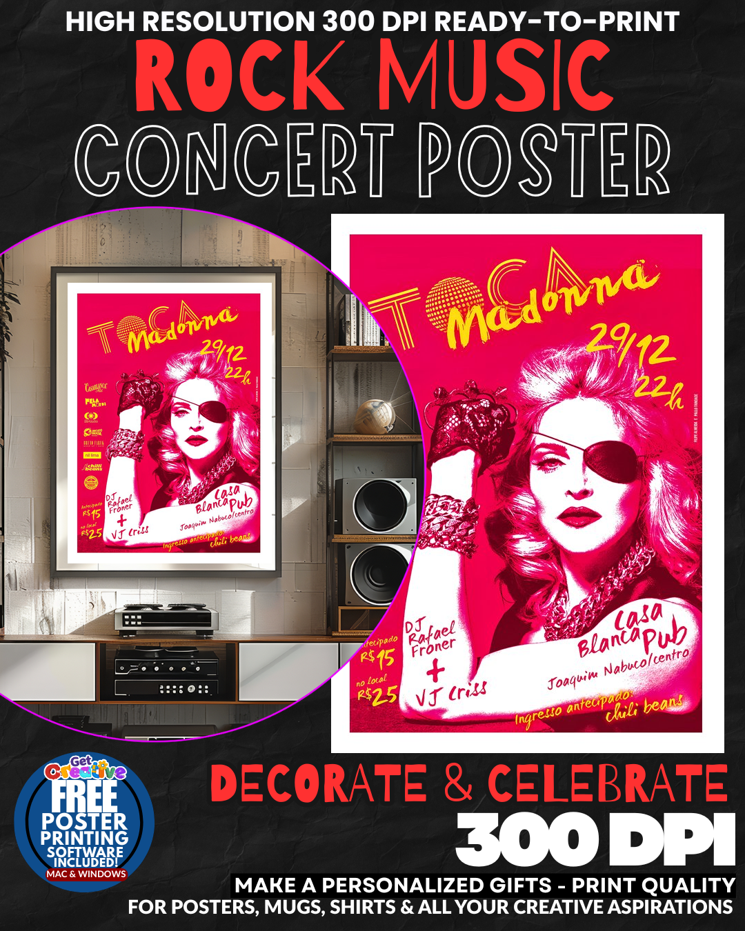 MADONNA’S ELECTRIC MAGNETISM TRANSFORMS YOUR SPACE INTO A SHRINE OF POP ROYALTY! Feel the UNSTOPPABLE ENERGY of the Material Girl’s legendary concert presence radiating from your walls! This stunning poster captures Madonna’s ICONIC stage power and transforms any room into a celebration of pure pop perfection and rebellious glamour. Experience the ELECTRIFYING rush of her groundbreaking performances every single day as this masterpiece commands attention with its bold concert imagery and star power that defined an entire generation of music lovers! GRAB this slice of pop culture history NOW!
