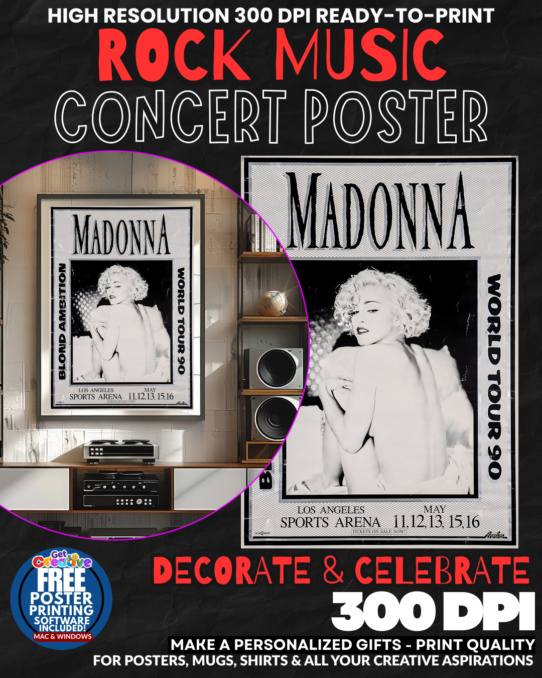 TRANSFORM YOUR SPACE INTO A SHRINE OF POP ROYALTY! Feel the ELECTRIC ENERGY of the Material Girl’s legendary 4 Music era coursing through your walls! This stunning concert poster captures Madonna at her most REVOLUTIONARY peak, bringing the raw power and glamorous rebellion of her iconic tour directly into your home! Every glance will transport you back to those UNFORGETTABLE nights when the Queen of Pop ruled the stage with unmatched sophistication and boundary-breaking artistry! Your guests will be MESMERIZED by this authentic piece of music history that screams sophisticated taste and pop culture mastery! GRAB this slice of Madonna magic NOW!