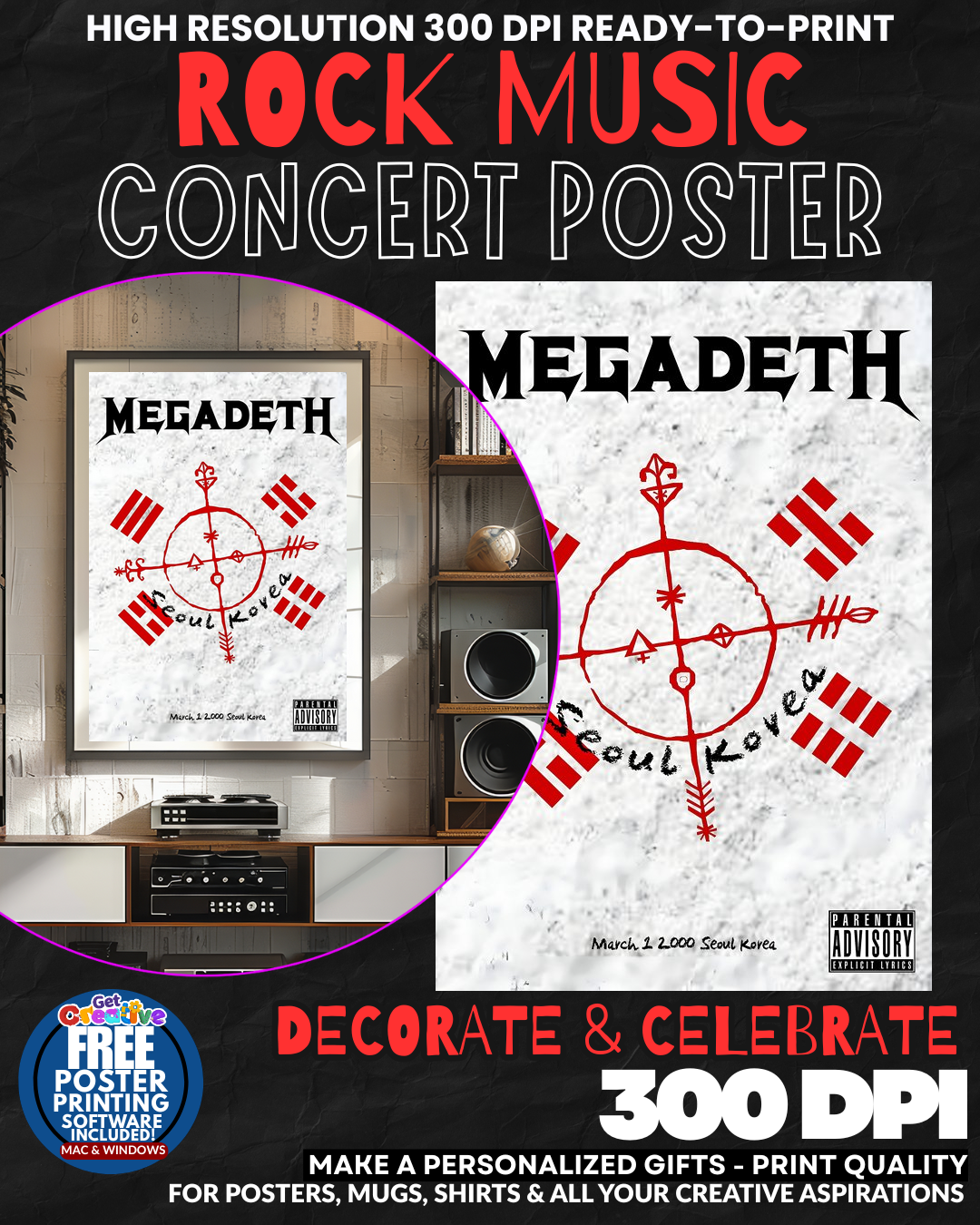 UNLEASH THE FURY OF METAL LEGENDS IN YOUR DOMAIN! Transform your space into a SHRINE OF PURE METAL POWER with this electrifying Megadeth concert poster that radiates the RAW ENERGY and THUNDEROUS MIGHT of thrash metal royalty! Your walls will PULSE with the same adrenaline-fueled intensity that has dominated stages worldwide, while friends and fellow metalheads bow before your impeccable taste in legendary rock iconography! This isn’t just wall art – it’s a DECLARATION OF YOUR ALLEGIANCE to the gods of speed metal and a testament to your sophisticated understanding of music history’s most explosive moments! GRAB this piece of metal immortality before it vanishes into the void!