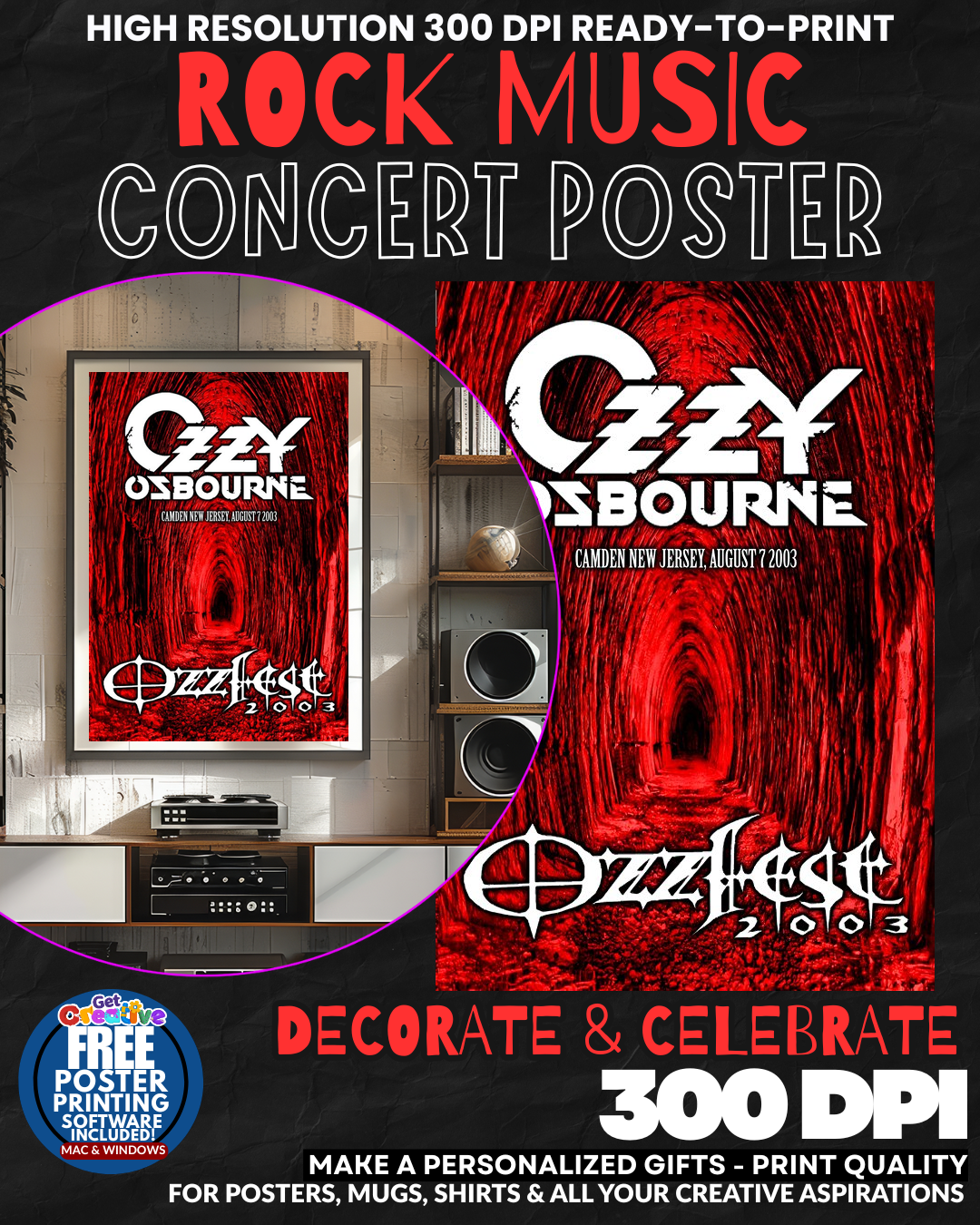 UNLEASH THE MADMAN’S POWER IN YOUR SPACE! Transform any wall into a SHRINE OF ROCK ROYALTY with this electrifying Ozzy Osbourne concert poster! Feel the RAW ENERGY and REBELLIOUS SPIRIT of the Prince of Darkness himself radiating through your room! This isn’t just wall art – it’s a DECLARATION OF YOUR ROCK AND ROLL SOUL that commands respect from every visitor! Watch as your space becomes a TEMPLE TO METAL MAYHEM that captures the wild essence of rock’s most legendary madman! GRAB this piece of rock history NOW!