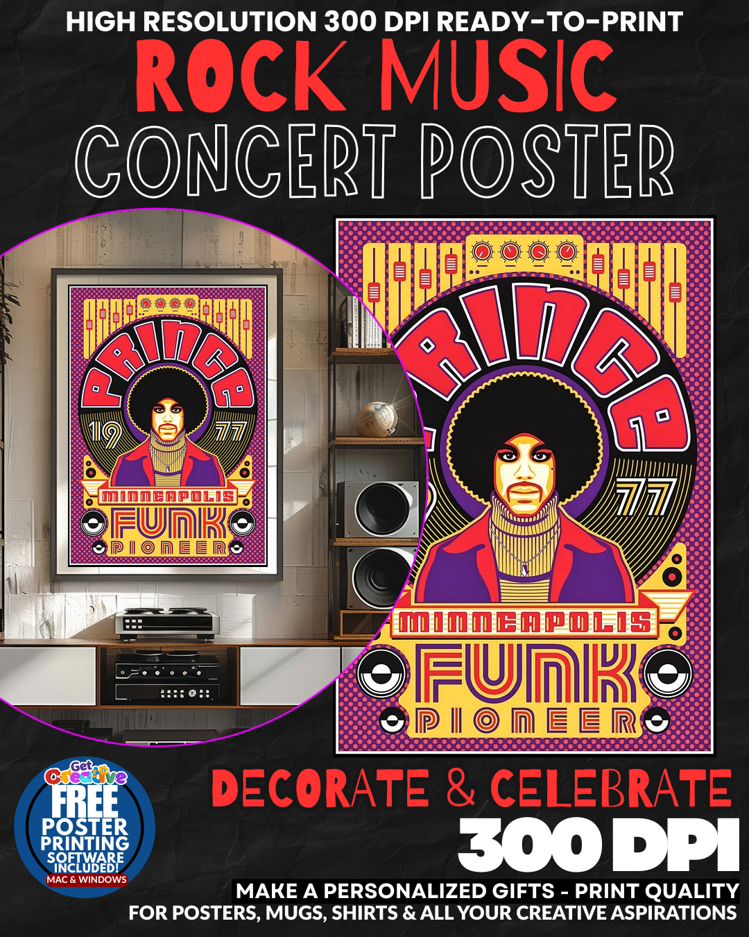 PURPLE REIGN UNLEASHED IN YOUR SPACE! Transform your walls into a SHRINE OF MUSICAL GENIUS with this ELECTRIFYING Prince concert poster that captures the RAW MAGNETISM and REVOLUTIONARY SPIRIT of rock’s most enigmatic superstar! Feel the PULSATING ENERGY of Minneapolis funk royalty commanding your room with ICONIC PURPLE POWER that radiates pure artistic rebellion and sophisticated rock glamour. This isn’t just wall art – it’s a PORTAL TO MUSICAL GREATNESS that brings the intoxicating atmosphere of legendary live performances directly into your personal sanctuary! Every glance ignites memories of guitar solos that SHATTERED THE SOUND BARRIER and stage presence that redefined rock stardom forever! OWN this piece of music history NOW!