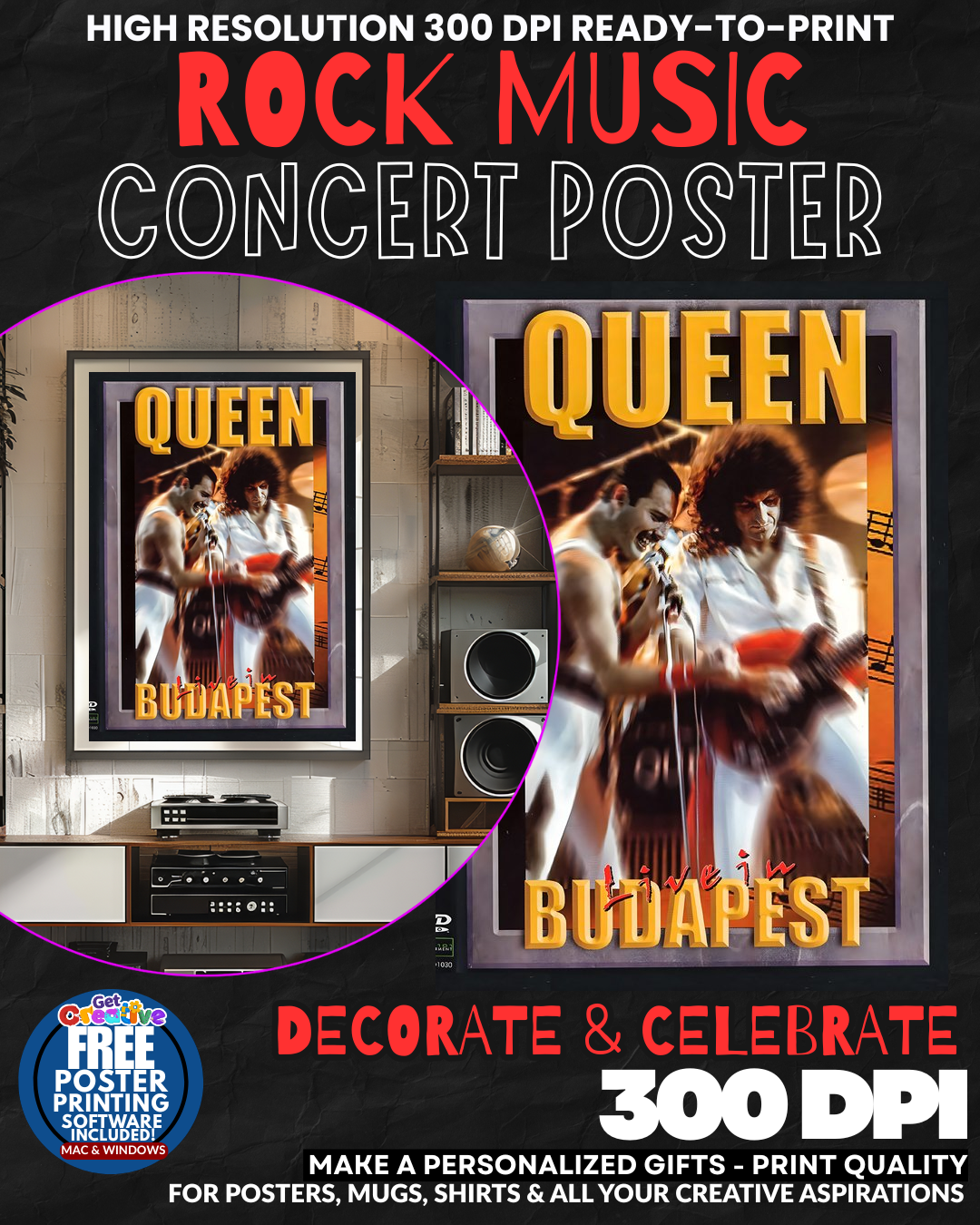 ROCK ROYALTY COMMANDS YOUR WALL! Transform any space into a LEGENDARY concert hall with this ELECTRIFYING Queen poster that captures the raw POWER and theatrical MAGNIFICENCE of rock’s greatest showmen! Feel the THUNDEROUS energy of Freddie Mercury’s commanding stage presence and the band’s EXPLOSIVE musical genius radiating from your walls as this stunning tribute brings the EPIC grandeur of arena rock directly into your home! Your guests will be MESMERIZED by the sheer ROCK AND ROLL MAJESTY that only Queen can deliver, making every room pulse with the UNSTOPPABLE energy of true musical legends! GRAB this piece of rock history NOW!