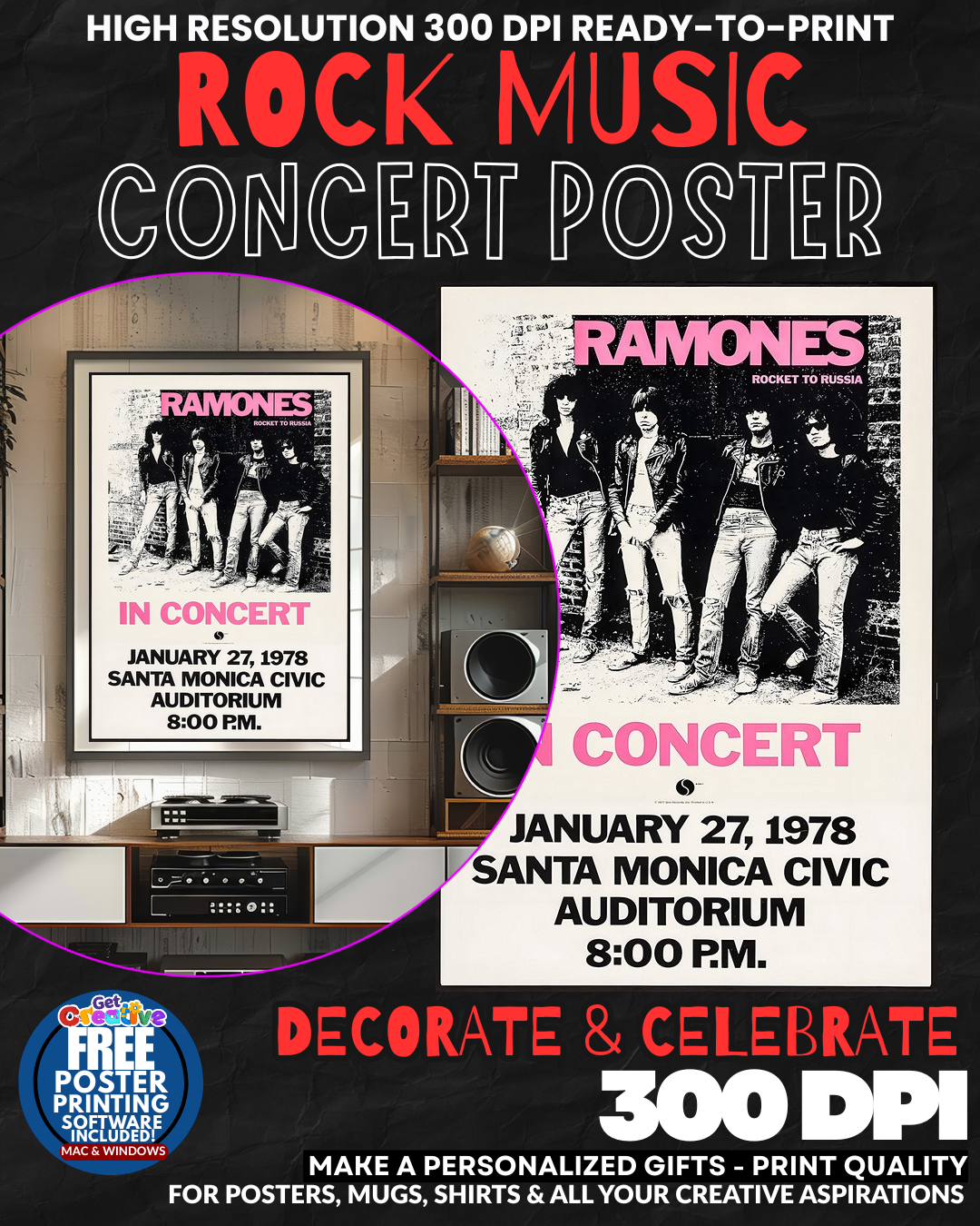 UNLEASH THE RAW POWER OF PUNK ROCK REBELLION IN YOUR SPACE! Transform any wall into a SHRINE TO ROCK AND ROLL HISTORY with this electrifying Ramones concert poster that captures the unstoppable energy and revolutionary spirit of punk’s founding fathers! Feel the THUNDEROUS BASS LINES and machine-gun drumbeats pulsing through your room as this iconic artwork brings the legendary CBGB atmosphere straight to your home! Your guests will be STUNNED by the authentic rock and roll credibility radiating from every corner while you bask in the glory of owning a piece of music history that screams COOL with every glance! GRAB this essential piece of punk rock paradise before it vanishes into the mosh pit of regret!