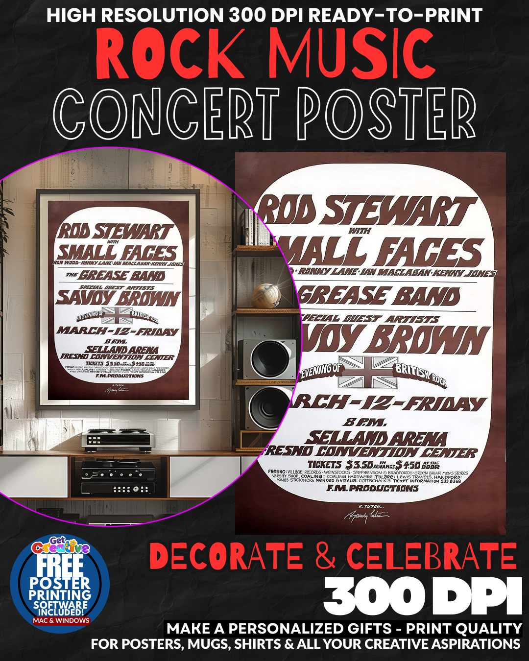BRING THE ROCK GOD HOME! Transform your space into a SHRINE TO ROCK ROYALTY with this electrifying Rod Stewart concert poster that captures the RAW MAGNETISM and LEGENDARY SWAGGER of rock’s ultimate showman! Feel the THUNDEROUS ENERGY of stadium concerts and the GLAMOROUS EXCITEMENT of rock stardom radiating from your walls as this stunning tribute to the blonde-maned icon fills your room with PURE ROCK AND ROLL ELECTRICITY! Every glance delivers a rush of musical nostalgia and sophisticated rock culture that elevates your space to VIP STATUS! GRAB this piece of rock history today!