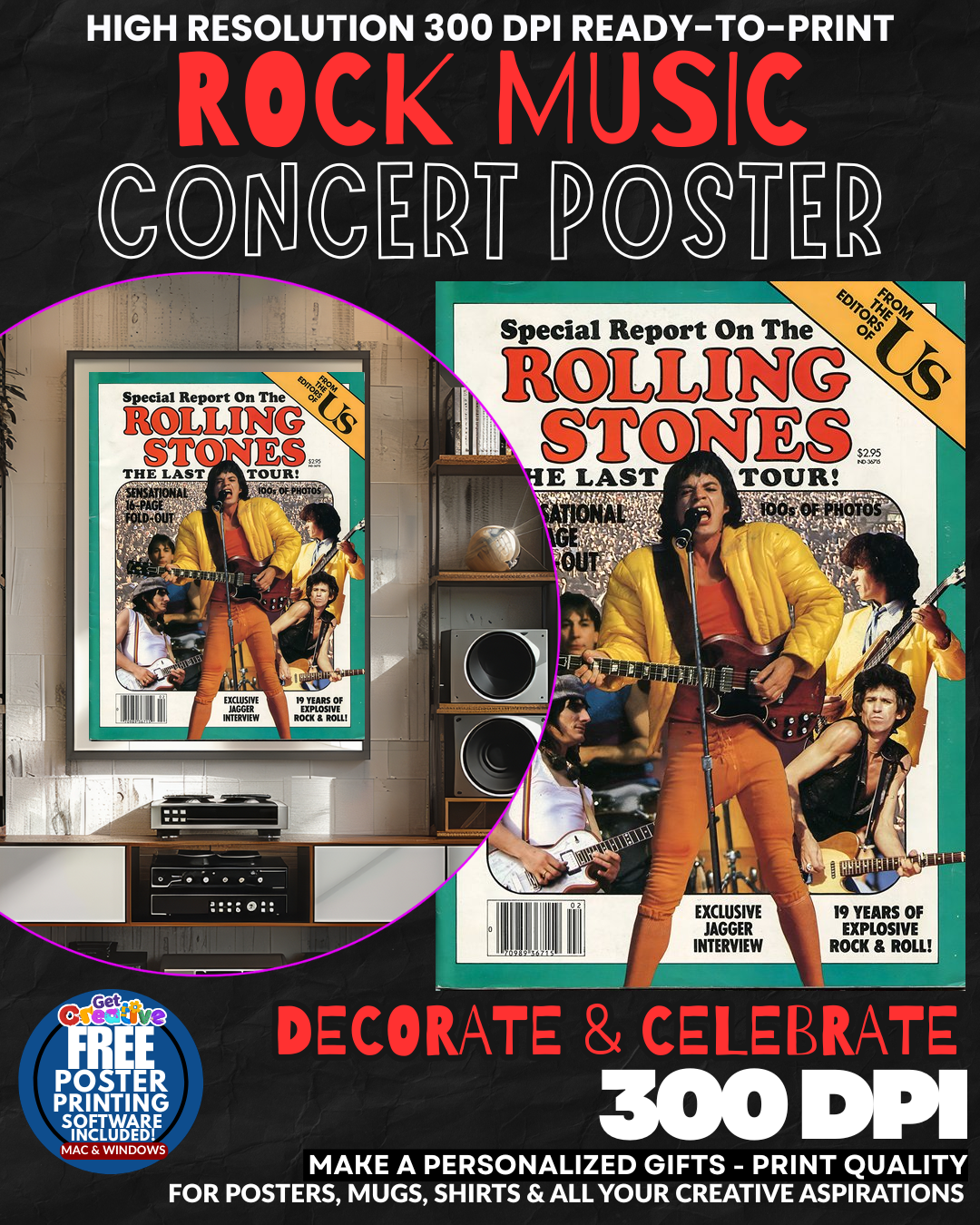 ROCK AND ROLL ROYALTY COMMANDS YOUR WALL! Transform your space into a LEGENDARY SHRINE with this ELECTRIFYING Rolling Stones concert poster that SCREAMS pure rock sophistication! Feel the RAW POWER and rebellious energy of rock’s greatest legends PULSING through your home as this ICONIC masterpiece declares your impeccable taste to every visitor! Watch as guests are MESMERIZED by the sheer MAGNETIC PRESENCE of Mick, Keith, and the boys dominating your wall with their UNSTOPPABLE rock and roll swagger! This isn’t just wall art – it’s your PERSONAL BACKSTAGE PASS to rock immortality that transforms any room into a TEMPLE OF ROCK GREATNESS! GRAB this slice of music history NOW!