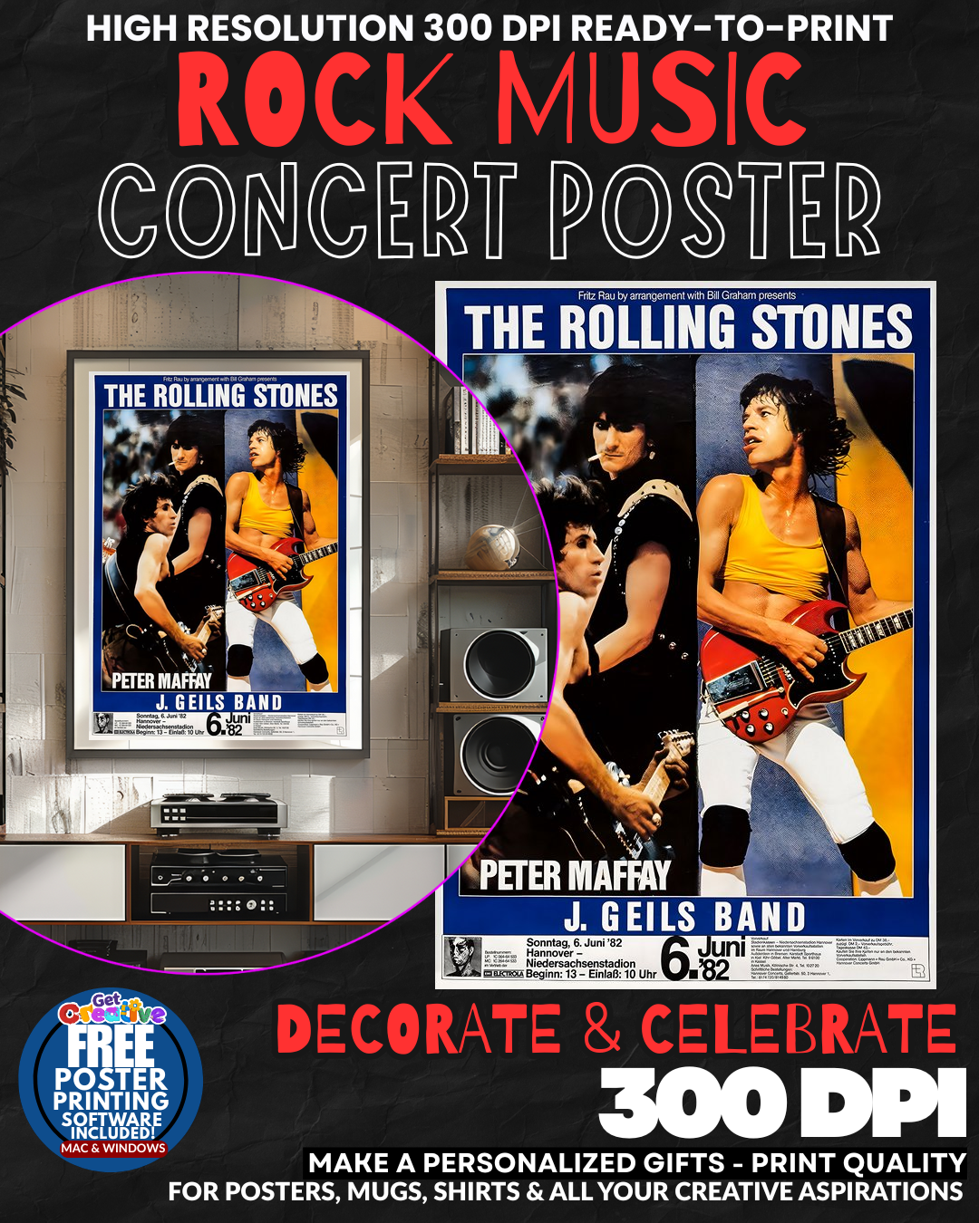 ROCK AND ROLL ROYALTY GRACES YOUR WALLS WITH LEGENDARY POWER! Transform your space into a SHRINE OF ROCK HISTORY with this electrifying Rolling Stones concert poster that captures the RAW ENERGY and rebellious spirit of rock’s greatest legends! Feel the THUNDEROUS POWER of Mick Jagger’s swagger and Keith Richards’ iconic riffs radiating from your walls as this stunning tribute brings the ELECTRIC ATMOSPHERE of legendary concerts directly into your home! Your guests will be MESMERIZED by the authentic rock and roll authenticity that only THE STONES can deliver, turning any room into a sophisticated celebration of music history and timeless rebellion! GRAB this piece of rock immortality NOW!