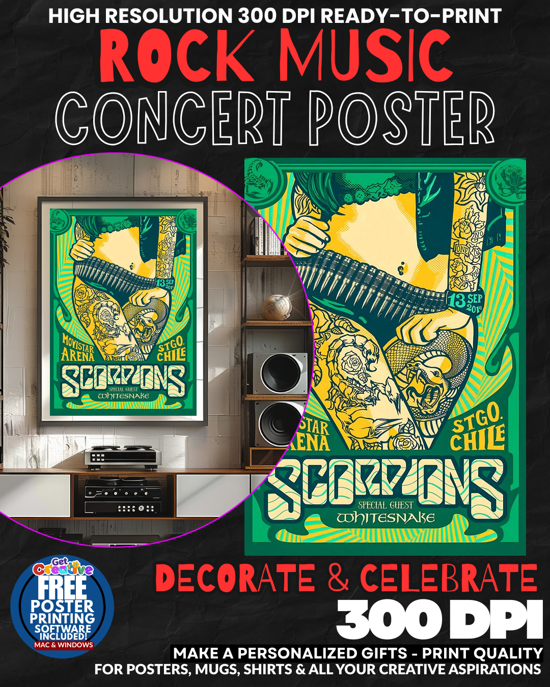 ROCK AND ROLL THUNDER STRIKES YOUR WALLS! Transform your space into a LEGENDARY ROCK SHRINE with this ELECTRIFYING Scorpions concert poster that SCREAMS pure German metal mastery! Feel the UNSTOPPABLE POWER of Klaus Meine’s soaring vocals and Rudolf Schenker’s CRUSHING guitar riffs EXPLODING from your wall every single day! This isn’t just wall art – it’s a PORTAL to rock immortality that instantly elevates your room into a TEMPLE OF PURE ROCK ENERGY! Your guests will be STUNNED by the sheer MUSICAL MAGNIFICENCE radiating from this incredible tribute to heavy metal LEGENDS! GRAB this piece of rock history NOW!