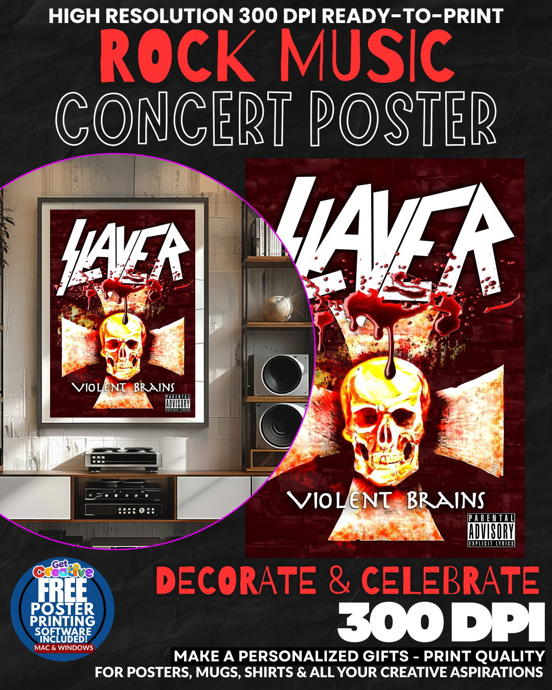 UNLEASH THE POWER OF METAL LEGENDS IN YOUR DOMAIN! Transform your walls into a SHRINE OF PURE METAL FURY with this EXPLOSIVE Slayer concert poster that radiates the RAW POWER and CRUSHING INTENSITY of thrash metal royalty! This isn’t just wall art – it’s a DECLARATION OF ALLEGIANCE to the gods of speed and aggression that will instantly elevate your space into a TEMPLE OF METAL SUPREMACY! Feel the THUNDEROUS ENERGY surge through your room as this poster commands TOTAL RESPECT from every metalhead who enters your sanctuary! GRAB this piece of metal history NOW!