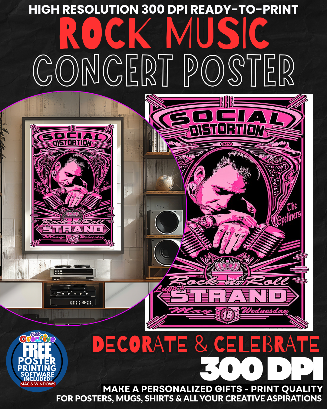 UNLEASH THE RAW POWER OF PUNK ROCK REBELLION IN YOUR SPACE! Transform any wall into a SHRINE TO AUTHENTIC ROCK AND ROLL with this electrifying Social Distortion concert poster! Feel the THUNDEROUS ENERGY and rebellious spirit of legendary punk pioneers Mike Ness and crew EXPLODE from your wall every single day! This isn’t just wall art – it’s a DECLARATION OF YOUR ROCK AND ROLL SOUL that commands respect and admiration from every music lover who enters your domain! Let the gritty authenticity and unstoppable attitude of Social D’s iconic sound DOMINATE your room with pure punk rock magnificence! GRAB THIS LEGENDARY ROCK POSTER NOW!
