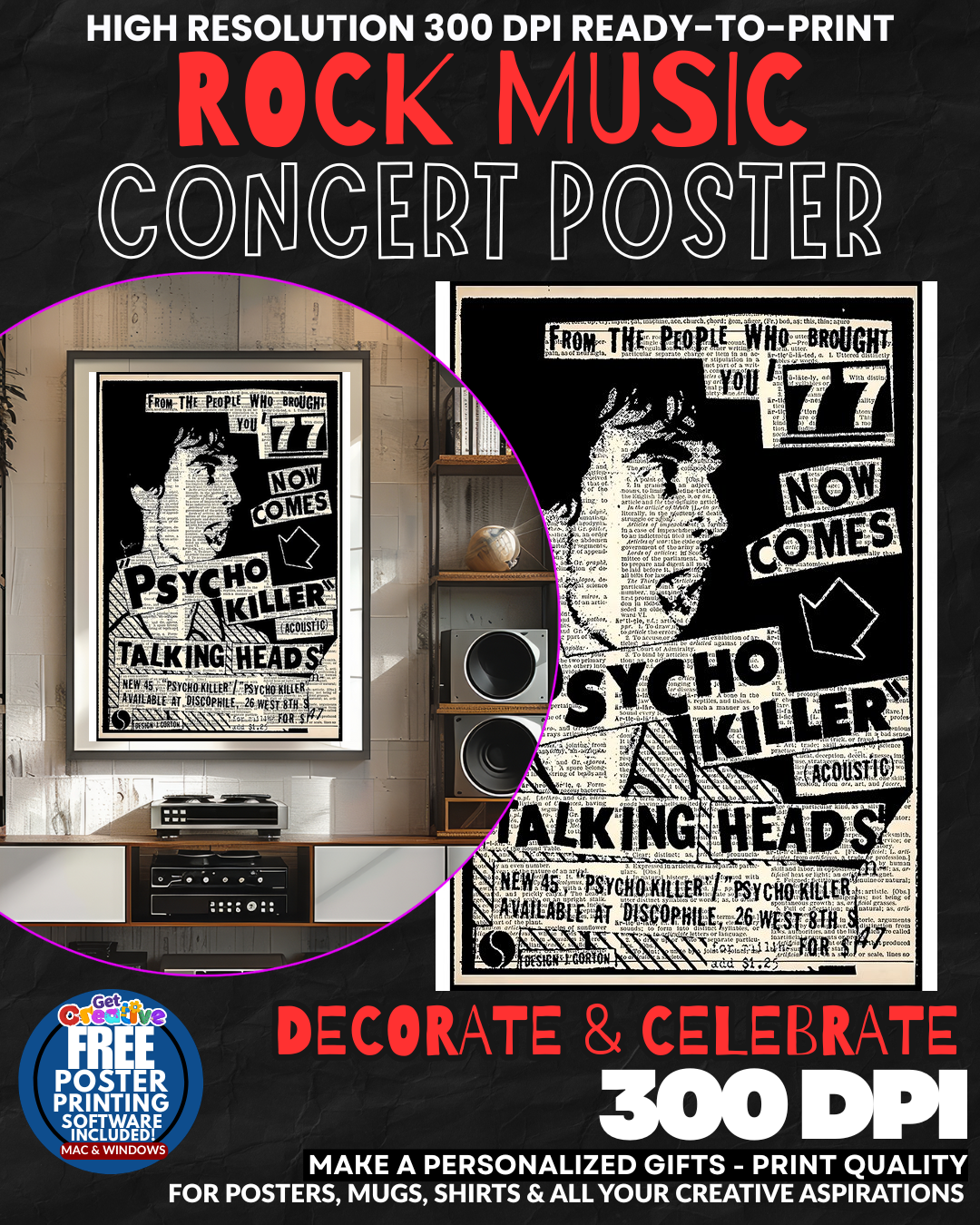 The Talking Heads 2 Music Rock Concert Poster Wall Art is a professionally designed poster that celebrates one of the most influential bands in rock and new wave music history. This high-quality wall art piece features striking visual elements that capture the essence and artistic spirit of Talking Heads, making it an essential addition for music enthusiasts and collectors alike. The poster showcases bold graphics and compelling design elements that reflect the band’s innovative approach to music and visual aesthetics. Crafted with attention to detail, this artwork serves as both a tribute to the iconic group and a stylish decorative piece for any space. Perfect for music rooms, studios, bedrooms, or living areas, this poster adds character and personality to your walls while demonstrating your appreciation for groundbreaking rock music. The design maintains the artistic integrity associated with Talking Heads’ visual identity, making it an authentic representation of their cultural impact. Whether you’re a longtime fan or someone who appreciates quality music memorabilia, this poster offers excellent value at an affordable price point. The artwork is suitable for framing and will complement various interior design styles while serving as a conversation starter for fellow music lovers.