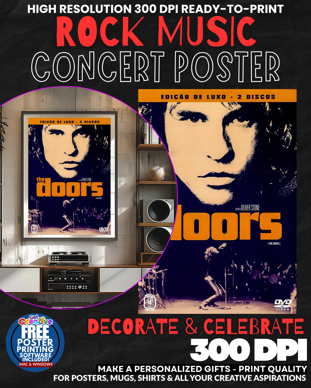 Adorn your space with The Doors 4 Music Rock Concert Poster Wall Art. This iconic rock poster offers a professional-grade display for fans and collectors, available for only $2.95.