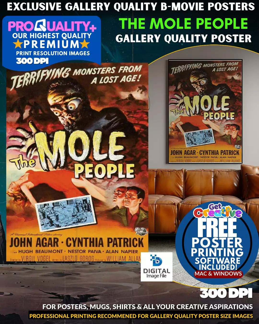 THE MOLE PEOPLE! Get the SHOCKING POSTER that will give your guests nightmares! This SUPER-SHARP QUALITY lets you print a GALLERY-SIZED BEAST! Relive the terror! DAZZLE with your collection of cinematic oddities! A FRIGHTENINGLY GOOD DEAL!