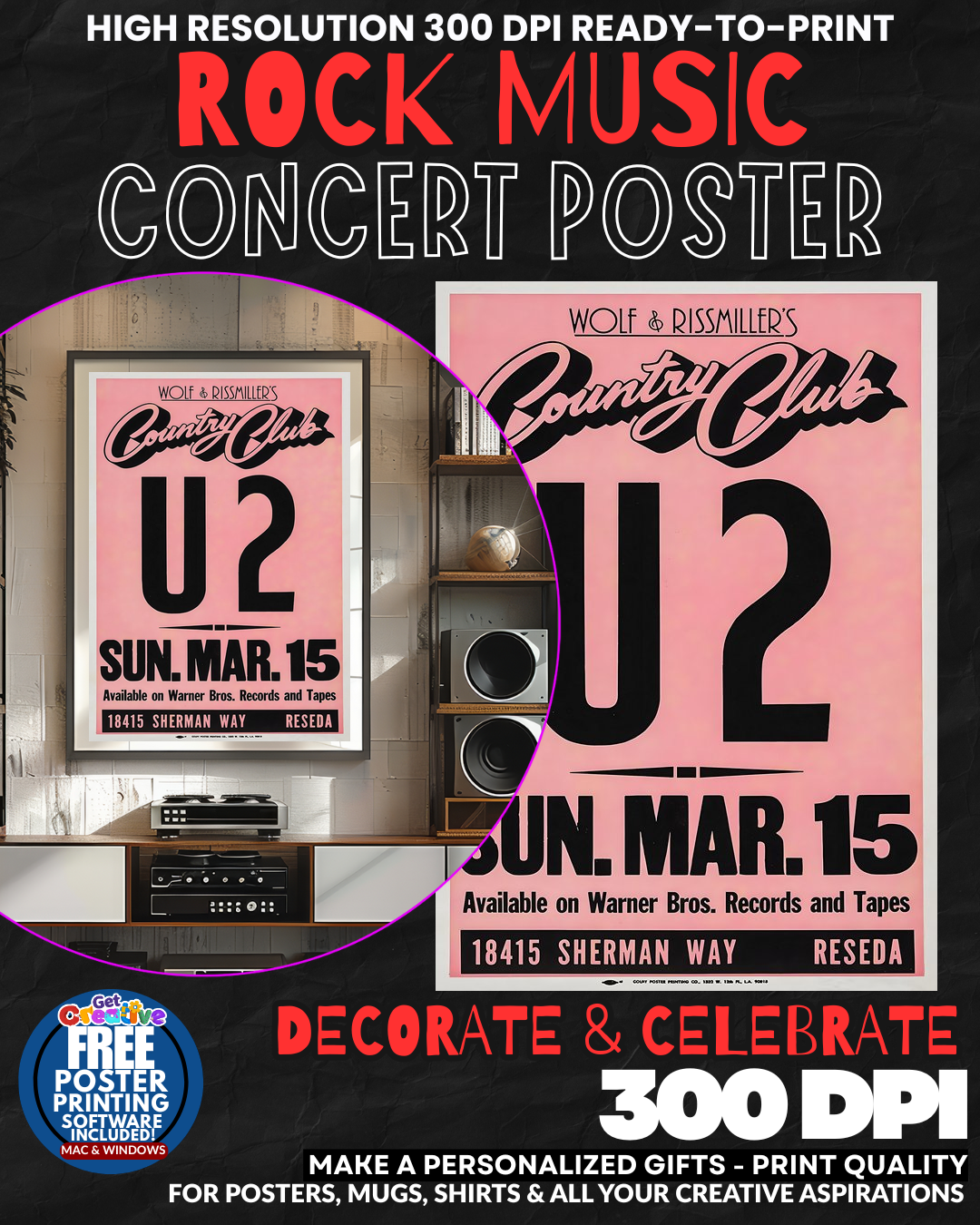Display your passion for music with this U2 8 Music Rock Concert Poster Wall Art. A high-quality poster perfect for any fan’s collection or decor.