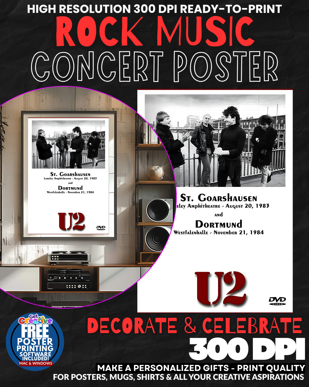 U2 9 Music Rock Concert Poster Wall Art. Celebrate iconic rock with this captivating poster. An essential piece for any U2 enthusiast or music art collector.