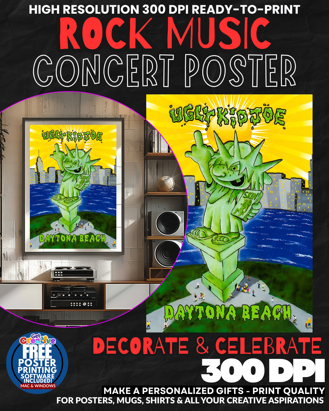 Display your passion for rock music with the Ugly Kid Joe 1 Concert Poster Wall Art. This vibrant poster brings classic rock energy to any space. Available for just $2.95.