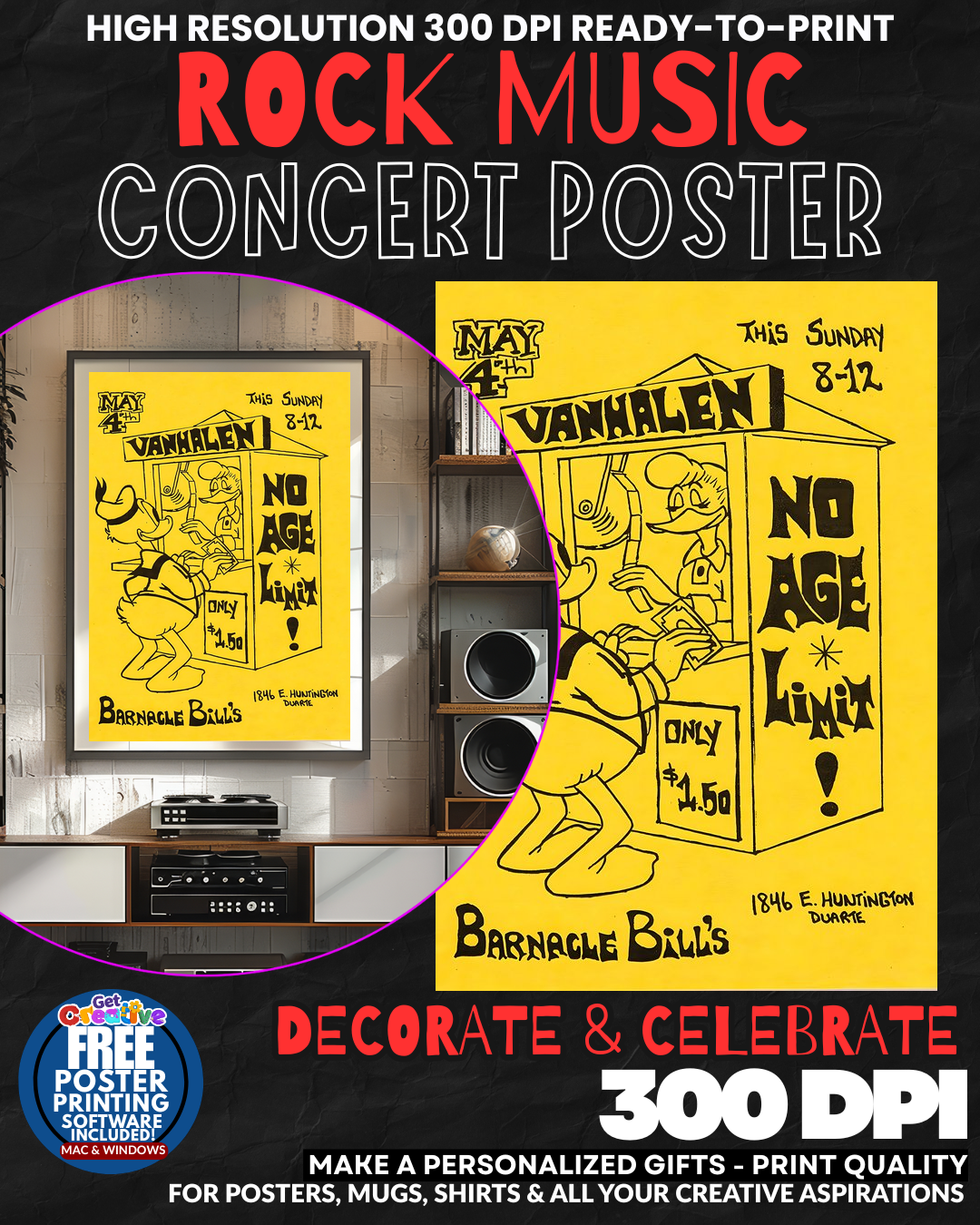 The Van Halen 1 Music Rock Concert Poster Wall Art captures iconic rock history. This high-quality poster is available for $2.95.