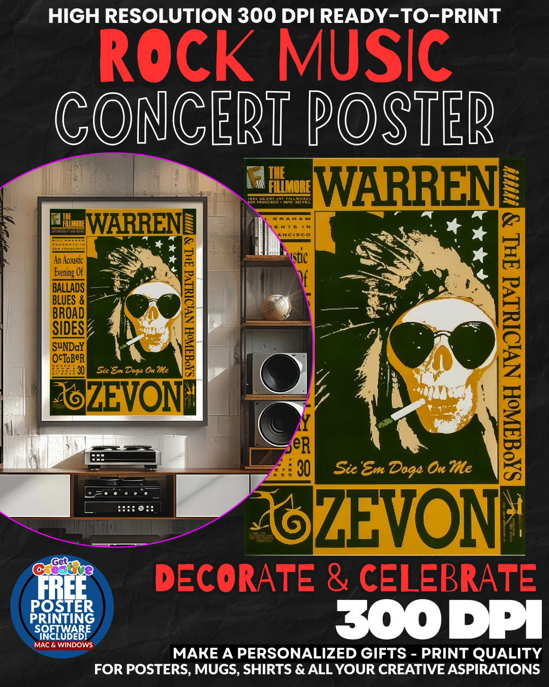 Warren Zevon 1 Music Rock Concert Poster Wall Art. Enhance your space with this captivating music poster, priced at just $2.95. A must-have for fans.