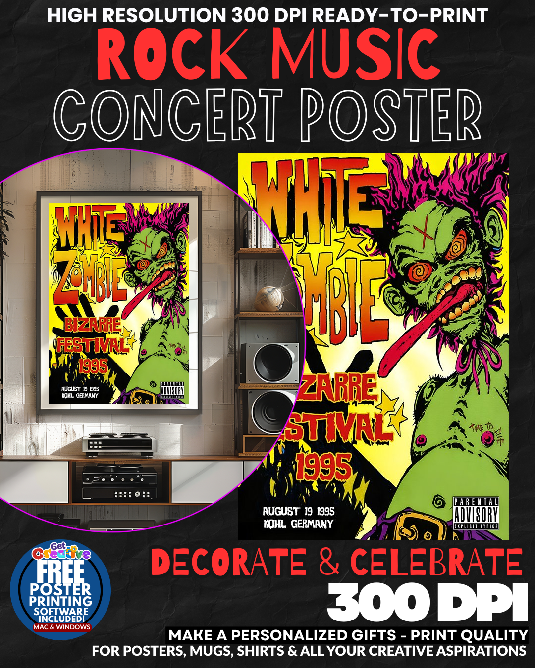 Display your passion for rock with the White Zombie 1 Music Rock Concert Poster Wall Art. A must-have for fans.