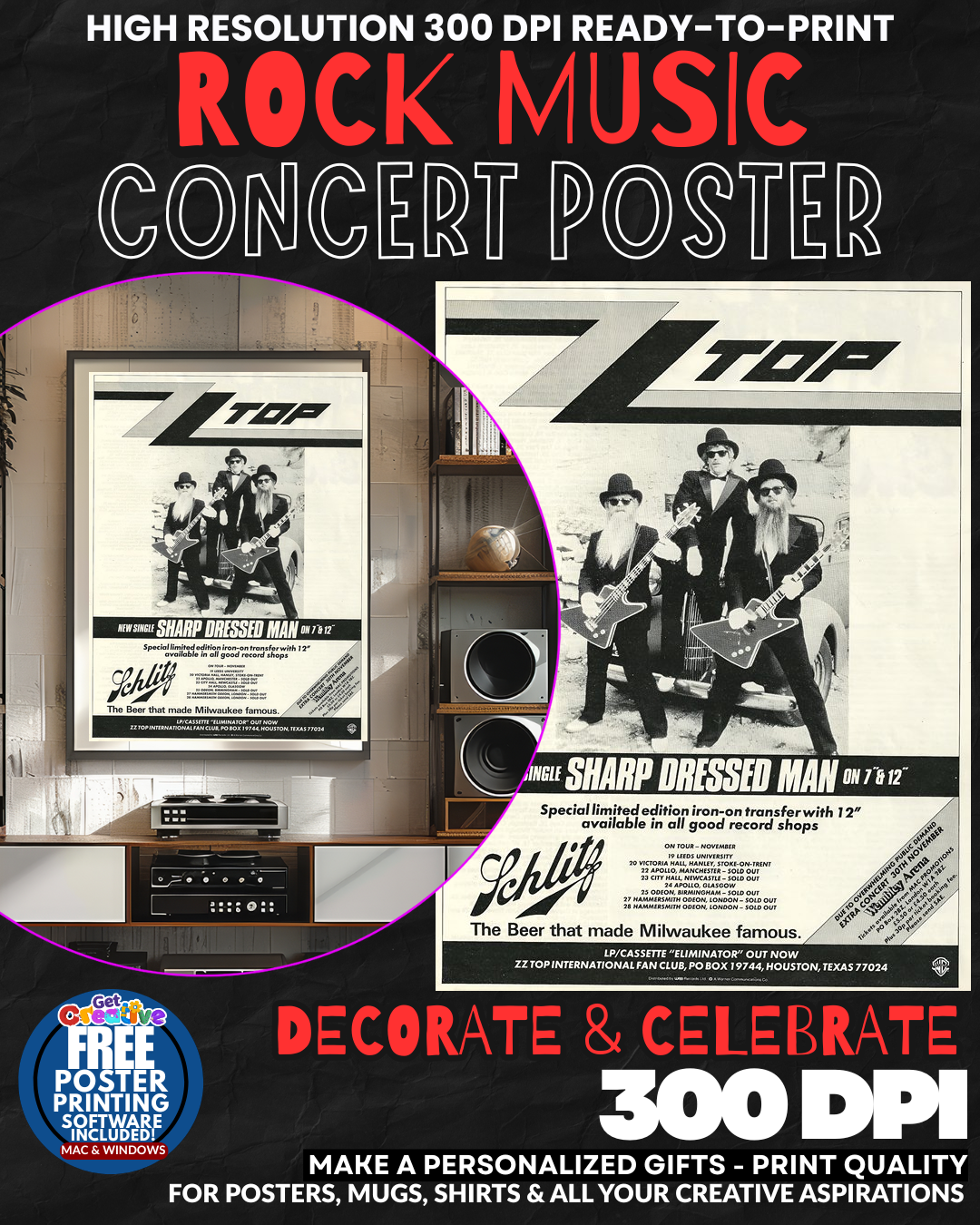 Zz Top 1 Music Rock Concert Poster Wall Art. Iconic rock concert poster, ideal for music lovers and wall decor.